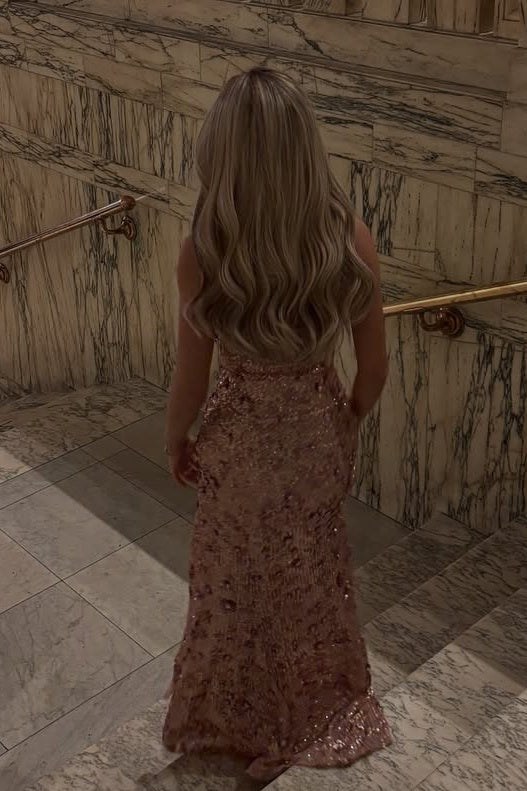 Pink Prom Dress Spaghetti Strap Evening Formal Dress Sleeveless Sequined Long Mermaid