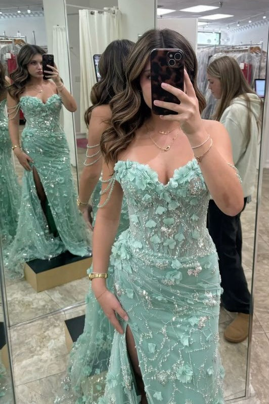 Off-Shoulder Floral Sequins Sparkly Mermaid Prom Dress