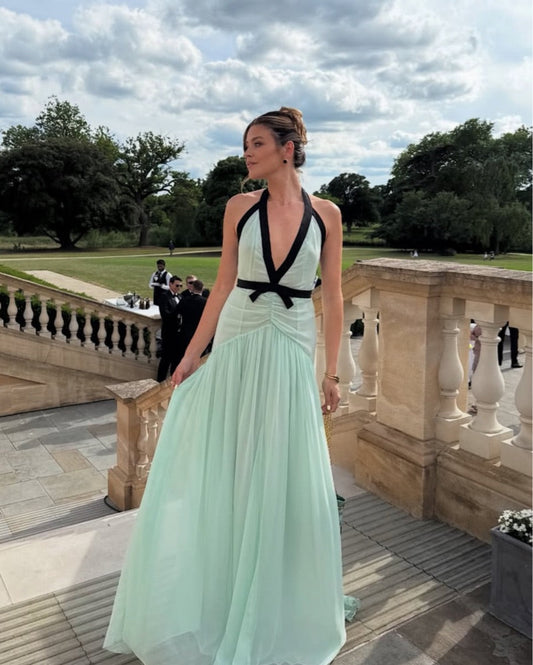 Mint Halter Chiffom Floor Length Prom Dress