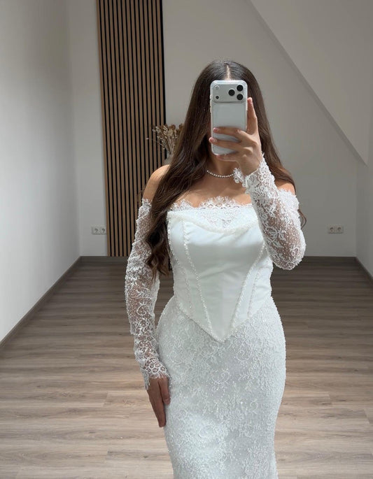 A-Line Sweetheart Long Sleeves Sweep Train Lace/Tulle Wedding DressesA-Line Sweetheart Long Sleeves Sweep Train Lace/Tulle Wedding DressesA-Line Sweetheart Long Sleeves Sweep Train Lace/Tulle Wedding DressesA-Line Sweetheart Long Sleeves Sweep Train Lace/