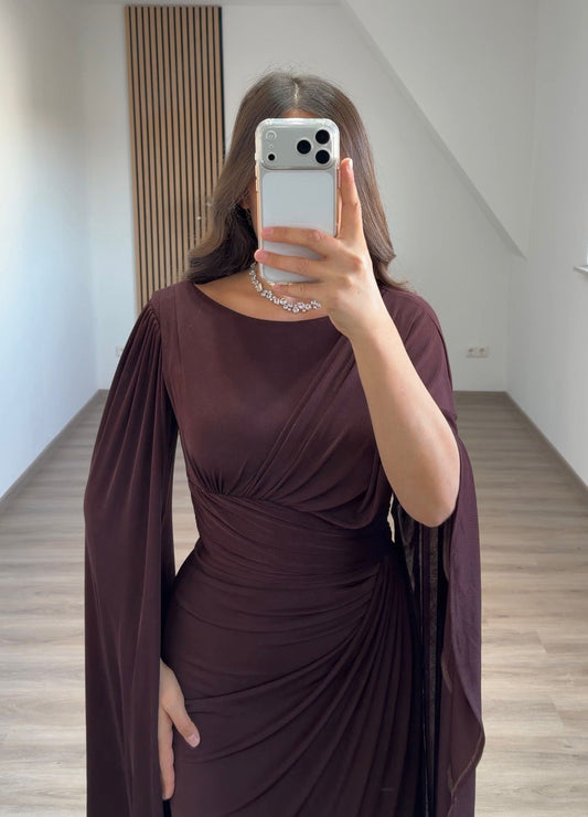 Agave Green Sheath High Neck Ruched Long Sleeves Evening Dress with Shawl