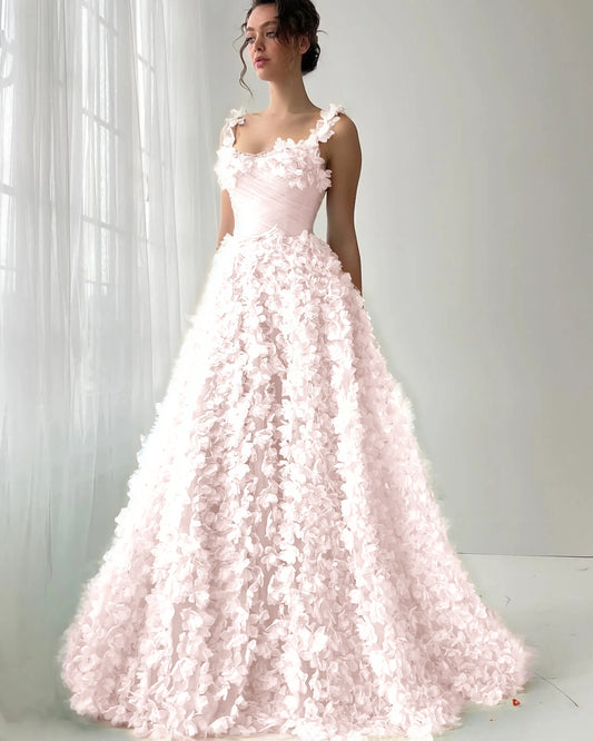 Strapless 3D Floral Lavender Prom Dress with Detachable Sleeves