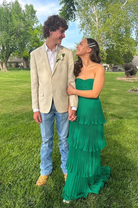 Sweetheart Strapless Tiered A-line Prom Dress Sleeveless Pleated Chiffon Floor-Length Party Gowns