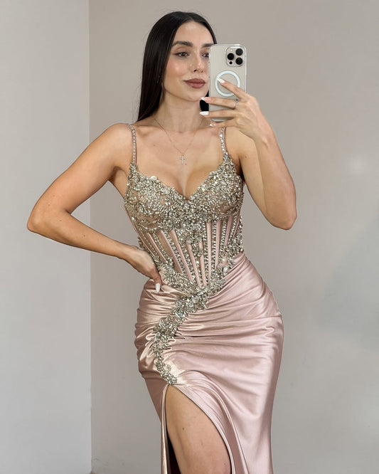 Women's Mermaid Long Prom Dresses Sweetheart Satin Beaded