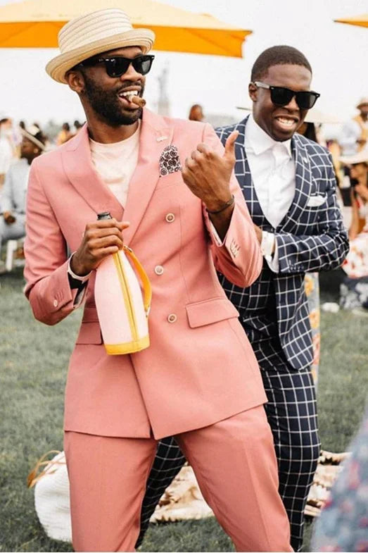 New Arrive Pink Men Wedding Suits Outfits Peaked Lape