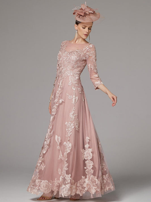Chic A-Line Chiffon Lace Scoop 3/4 Sleeves Floor-Length Mother of the Bride Dress