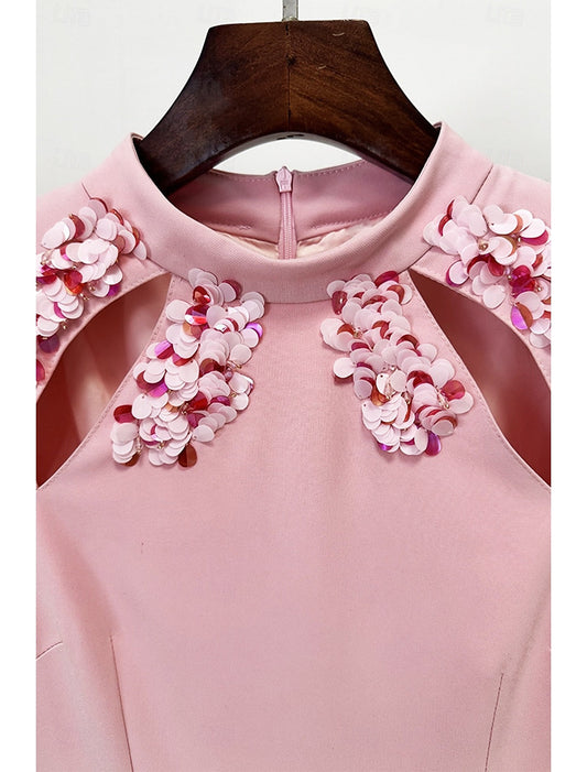 Pink Long Sleeve Sequins Mermaid Cut Outs Evening Dress