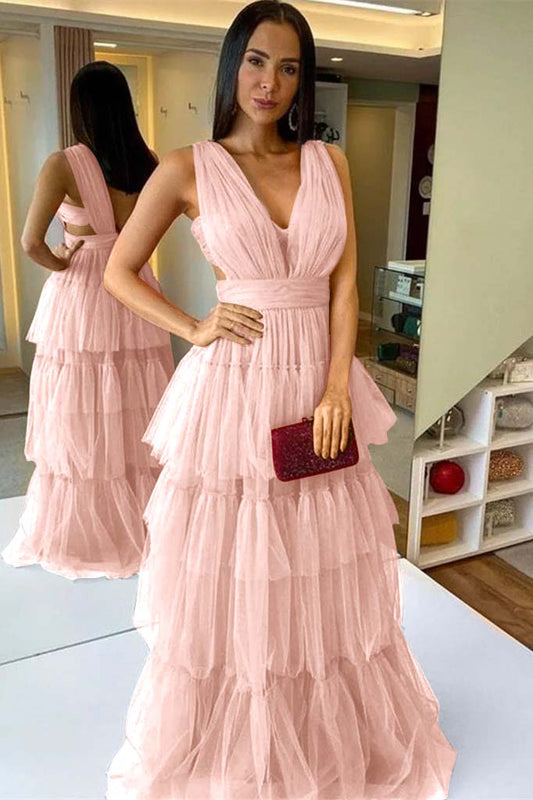 Hater V Neck Sleeveless High Waist Long Prom Dress With Pleated