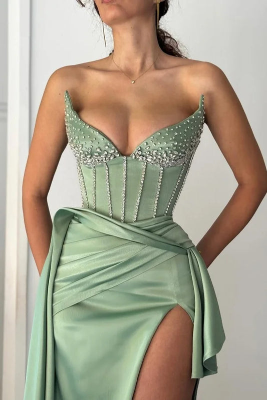 Spaghetti Straps Sleeveless Long Mermaid Prom Dress With Petals And Sequins