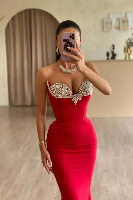Red Strapless Mermaid Slim Fit Beaded Formal Prom Dress ZT0533