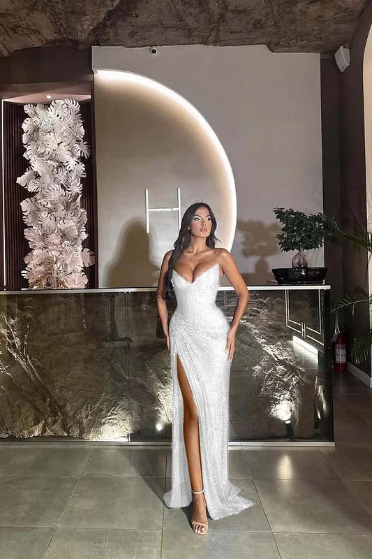 Red Strapless Gorgeous Split Sequins Prom Dress