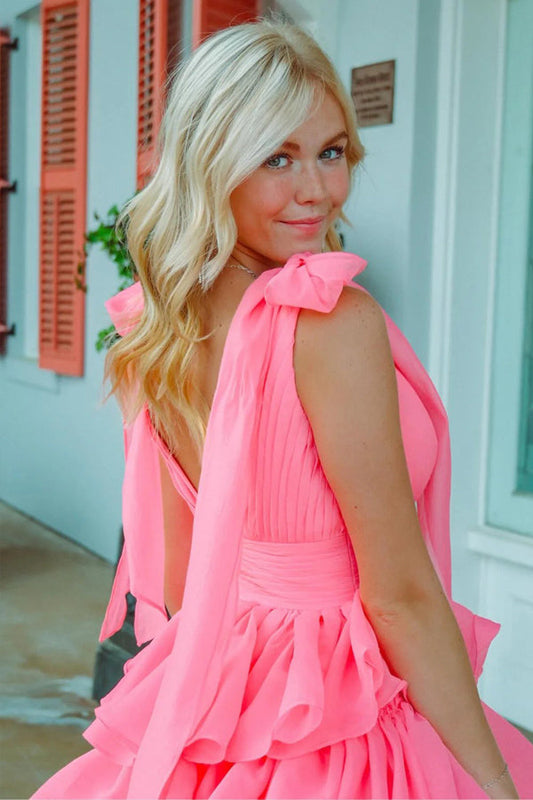 Princess A-Line V-Neck Fuchsia Prom Dress Party Dress With Slit