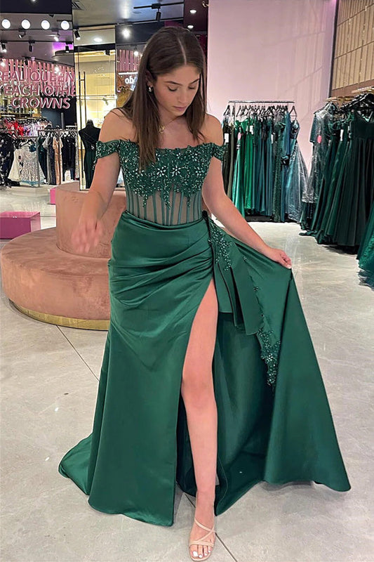 Off-Shoulder Mermaid Floral Long Prom Dress with Slit