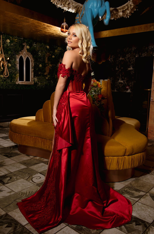 Red Off-Shoulder Sweetheart Floral Appliques Prom Dress