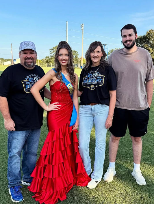 A-Line V-Neck Empire-Waist Lace Appliques Ruffles Long Prom Dress
