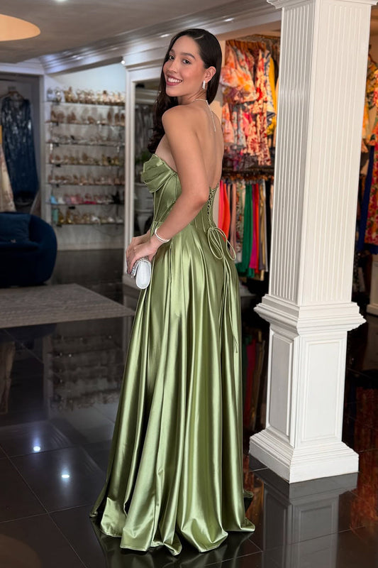 Elegant A-Line Sweetheart Sage Green Satin Long Prom Dress