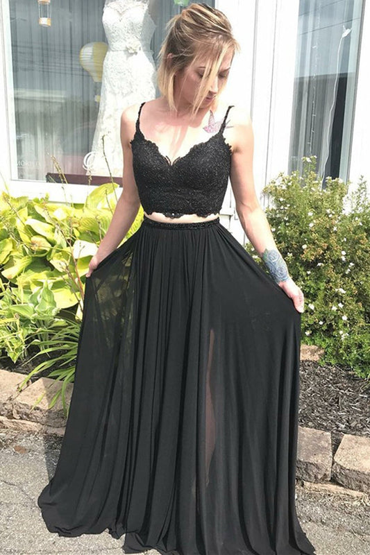 Spaghetti Straps Sleeveless Pleated Two Piece A-Line Prom Dress