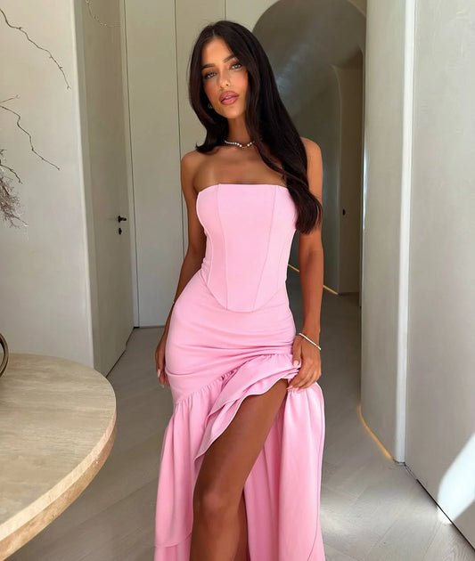Strapless Sleeveless Mermaid Front Split Prom Dress with Sequins