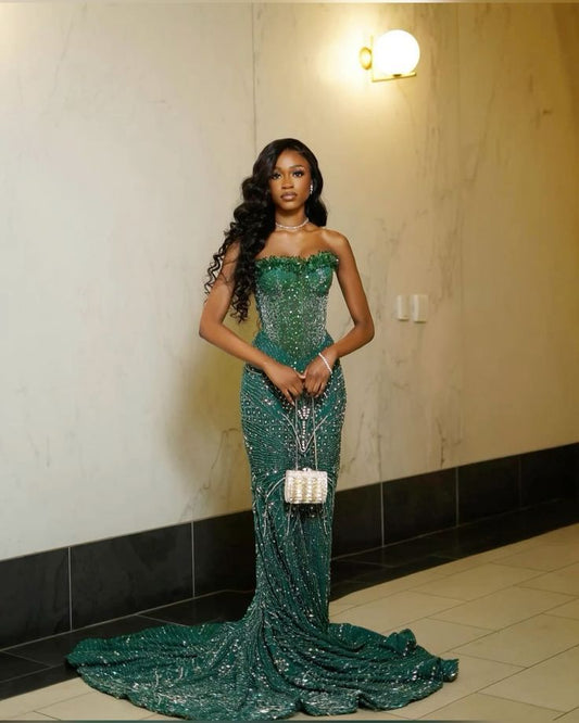 Sweetheart Fully Sequined Beaded Mermaid Black Girl Sleeveless Long Party Dress
