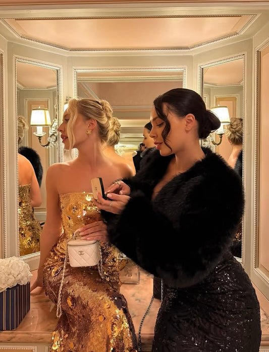 Shiny Sequined Tulle Sleeves Sweetheart Strapless Prom Dress