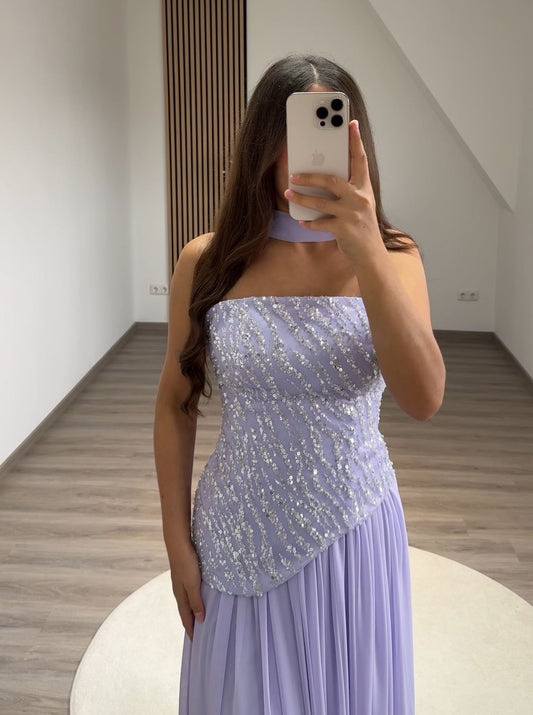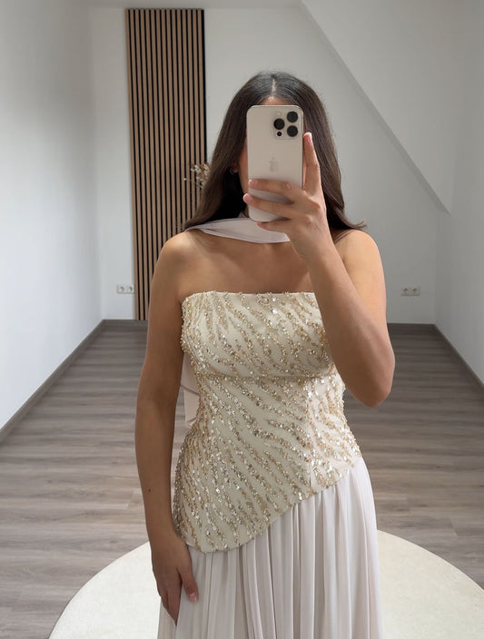 Long Sleeves Scoop Sequins Empire-Waist Prom Dress