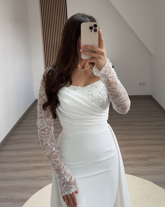 Mermaid Lace Long Sleeves Beaded Side Split Long Evening Formal Prom Dress