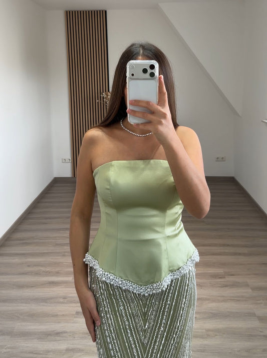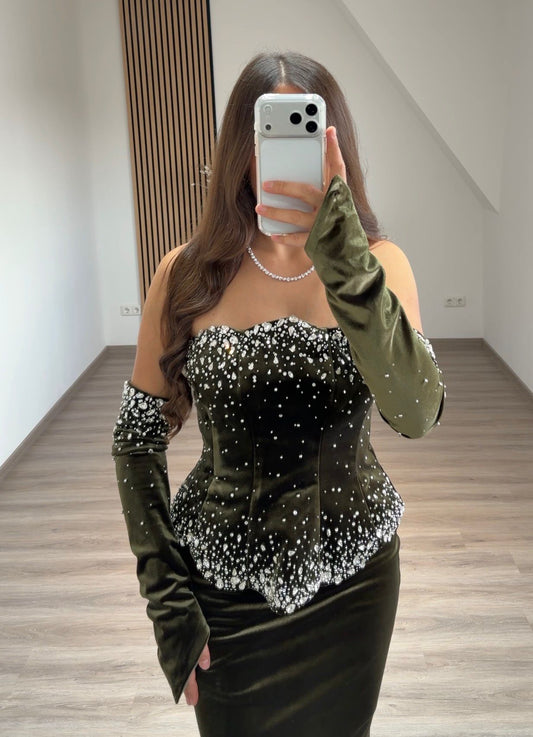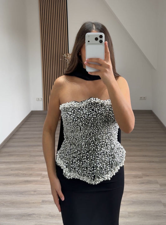 Scoop Prom Dress with Pearls Corset Evening Party Dress