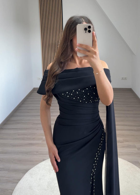 Mermaid Off-Shoulder Prom Dress with Slit Ruched Evening Party Dress