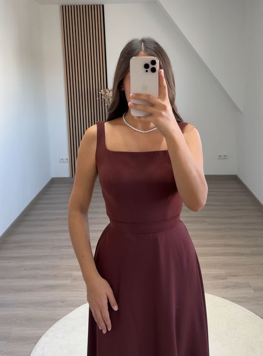 Satin Square Neck Long Sleeves Formal Dress with Sash