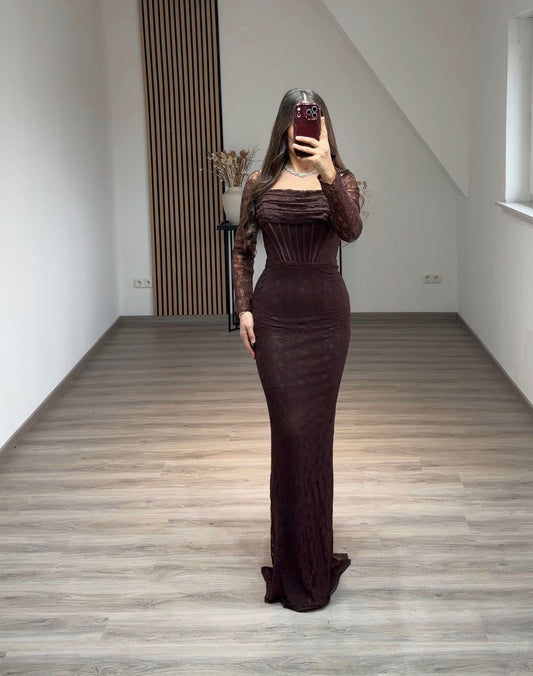 Luxury Caramel Beaded Arabic A-Line Corset Evening Dress
