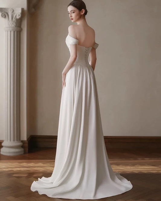 White Off-The-Shoulder Split Long Train Prom Dress ZT0736