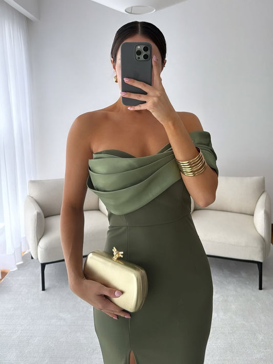Green Off-The-Shoulder Elegant Split Evening Dress ZT0383