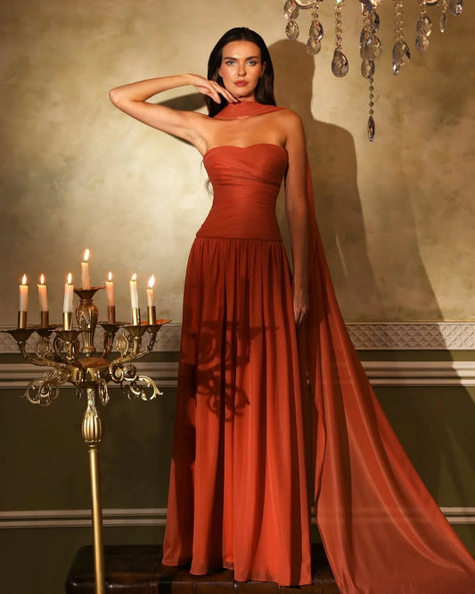 Burnt Orange Chiffon Strapless Prom Dress ZT0659
