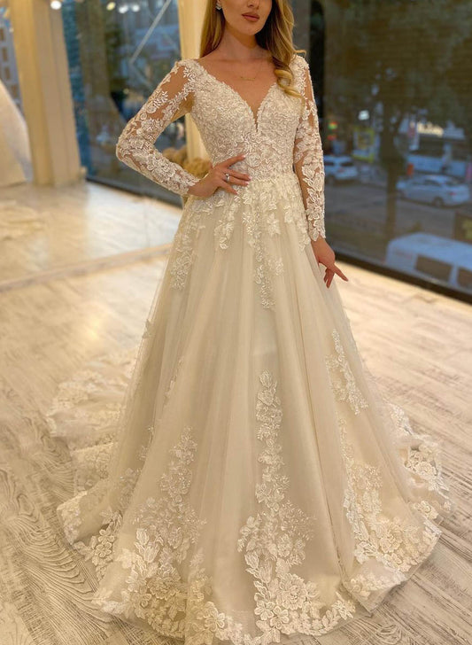 Luxury Lace V-Neck Long Sleeves A-Line Wedding DressesLuxury Lace V-Neck Long Sleeves A-Line Wedding DressesLuxury Lace V-Neck Long Sleeves A-Line Wedding DressesLuxury Lace V-Neck Long Sleeves A-Line Wedding DressesLuxury Lace V-Neck Long Sleeves A-Line