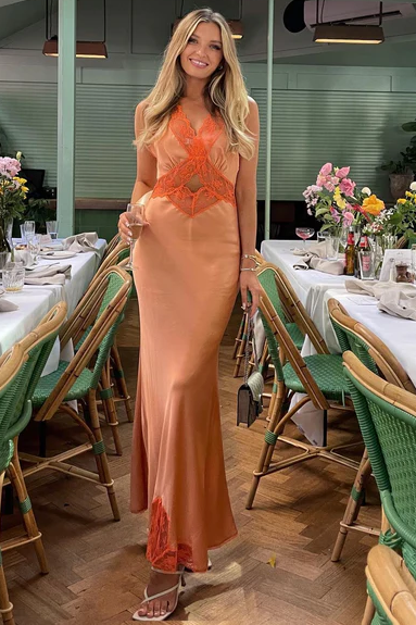 -Neck Straps Lace Appliques Pleats Sleeveless Long Prom Party Dress