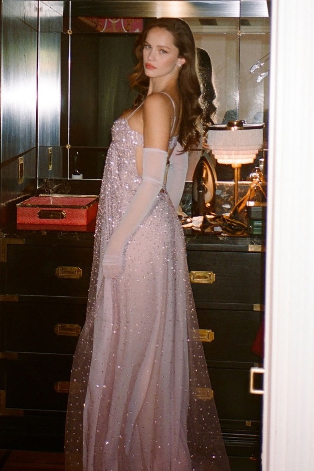 Shine with sophistication in this bling A-line party dress. Designed with delicate spaghetti straps, it offers a flattering silhouette that gently flows from the waist for elegant movement. Crafted in a chic grey-blue shade, the dress is adorned with sparkling beadwork, adding a touch of glamour that catches the light beautifully. Perfect for parties, evening events, or special occasions, this long dress combines timeless style with dazzling elegance.