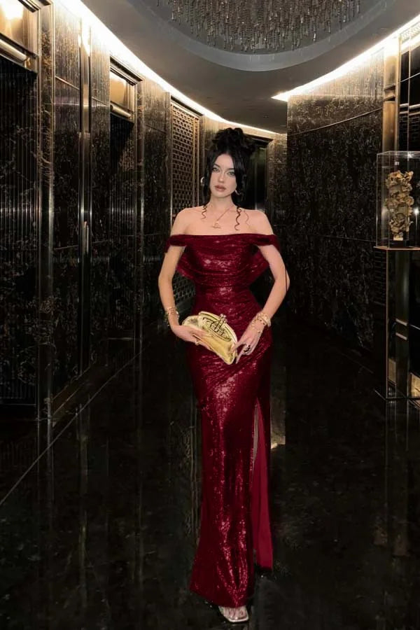 Elevate your prom night with this champagne sequin gown, designed to command attention. The all-over sequin embellishment creates a luminous, eye-catching finish that catches light beautifully throughout the evening. A dramatic side split adds contemporary flair and movement, allowing you to dance with confidence and ease. The solid champagne hue offers timeless elegance while the shimmering details ensure you'll stand out. Perfect for those seeking a balance of sophistication and show-stopping glamour, this dress delivers red-carpet-worthy style for your most memorable celebration.