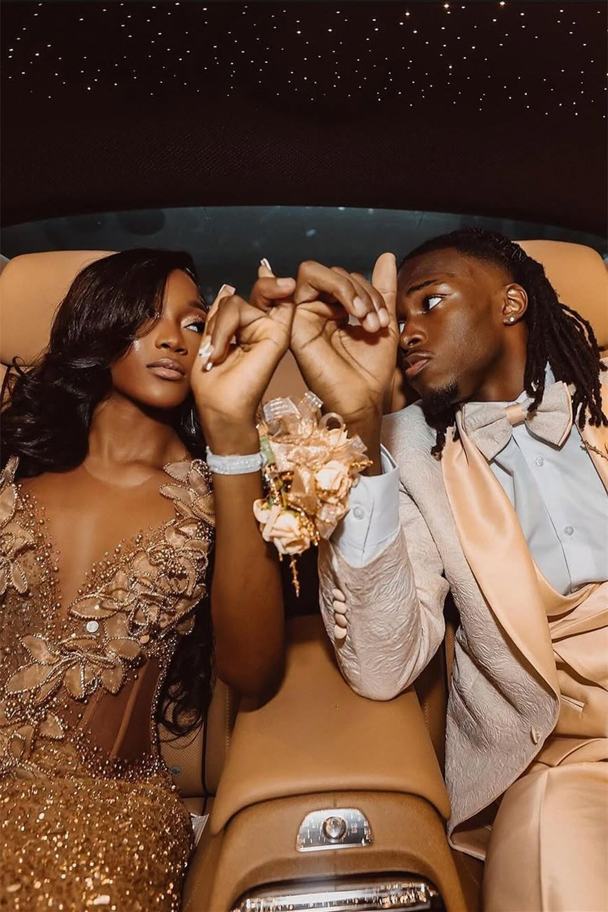 Champange Sleeveless Flowers Floor length Sparkle Prom Dress