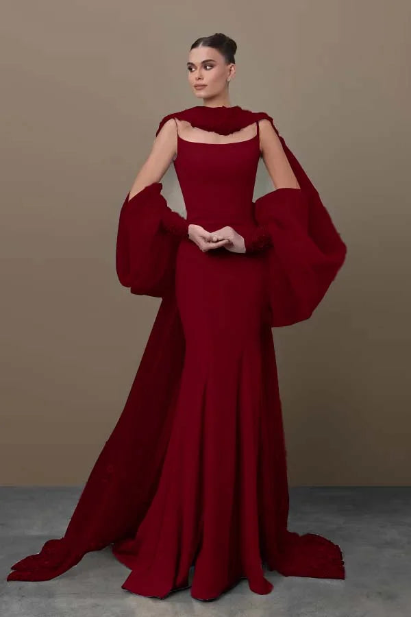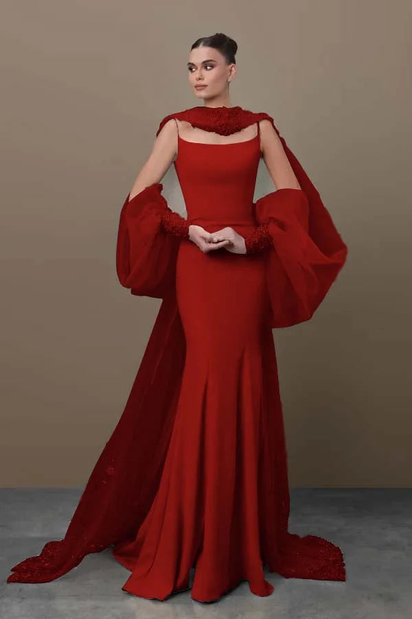 Chic Sky Blue Spaghetti-Straps Mermaid Prom Dress With Tulle Appliques Train