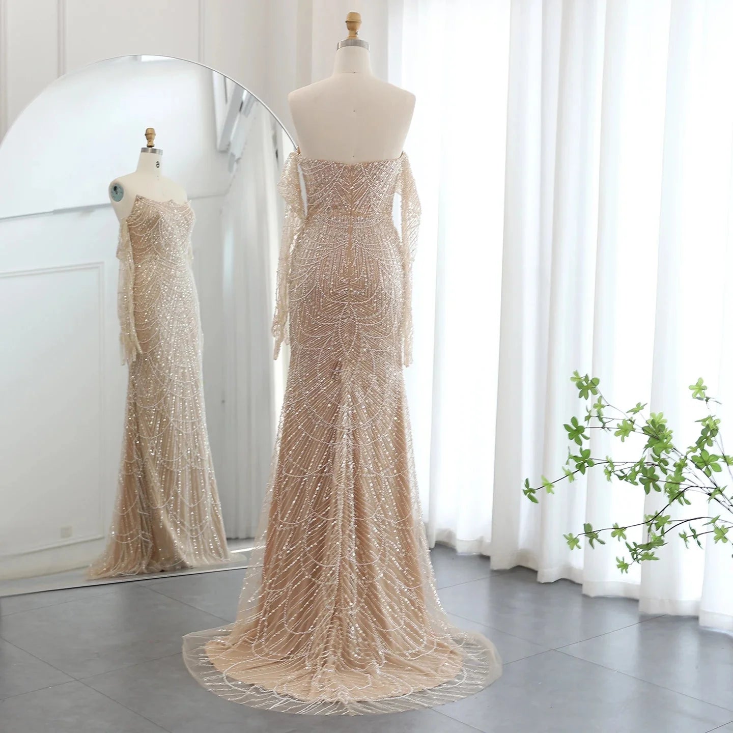 Elevate your elegance with Dreamy Vow's Luxury Dubai Mermaid Green Evening Dresses. With their beautiful gloves and elegant design, these gowns are perfect for any special occasion. Made for the sophisticated woman, they are sure to make a statement at any wedding party. Available in 2024.