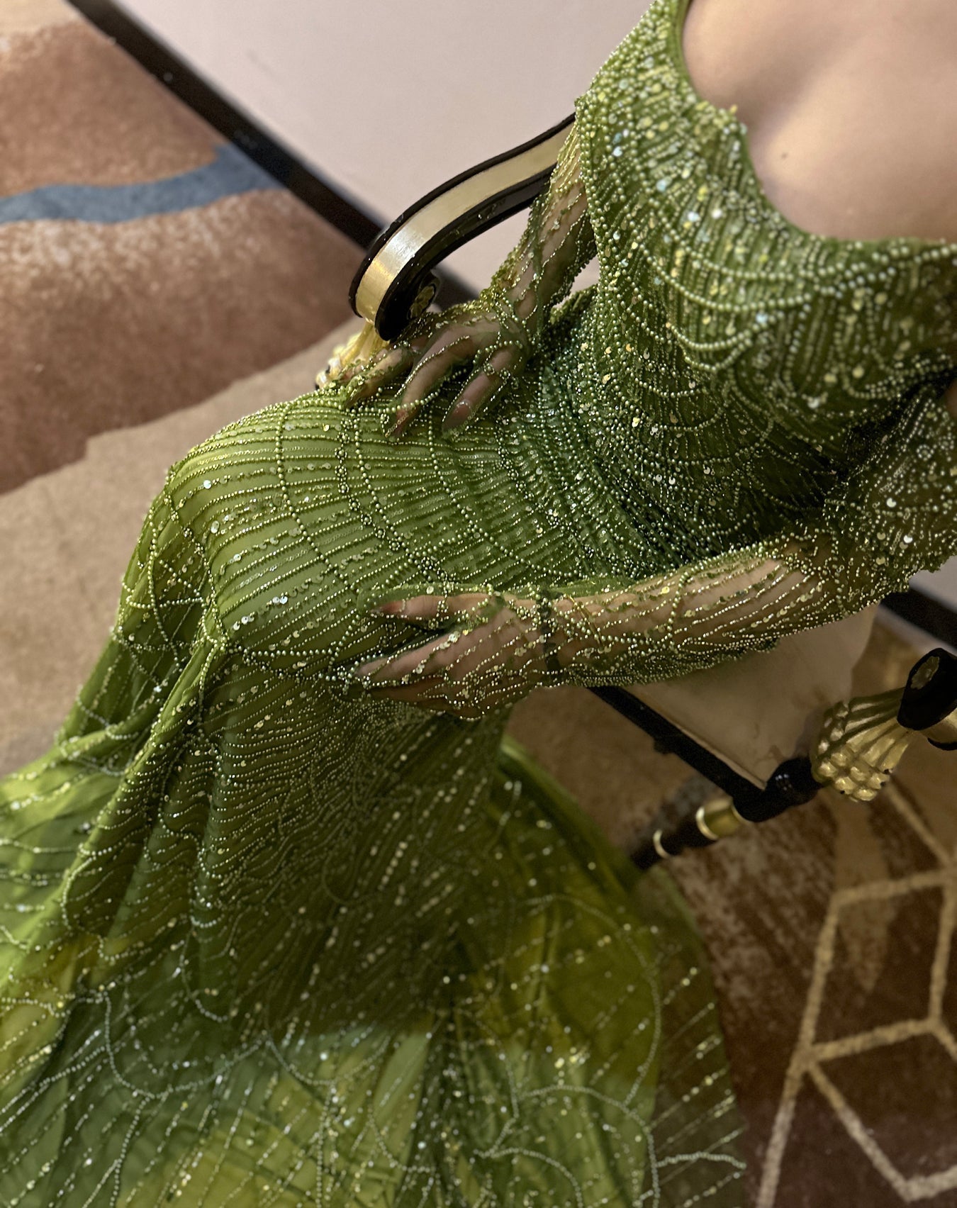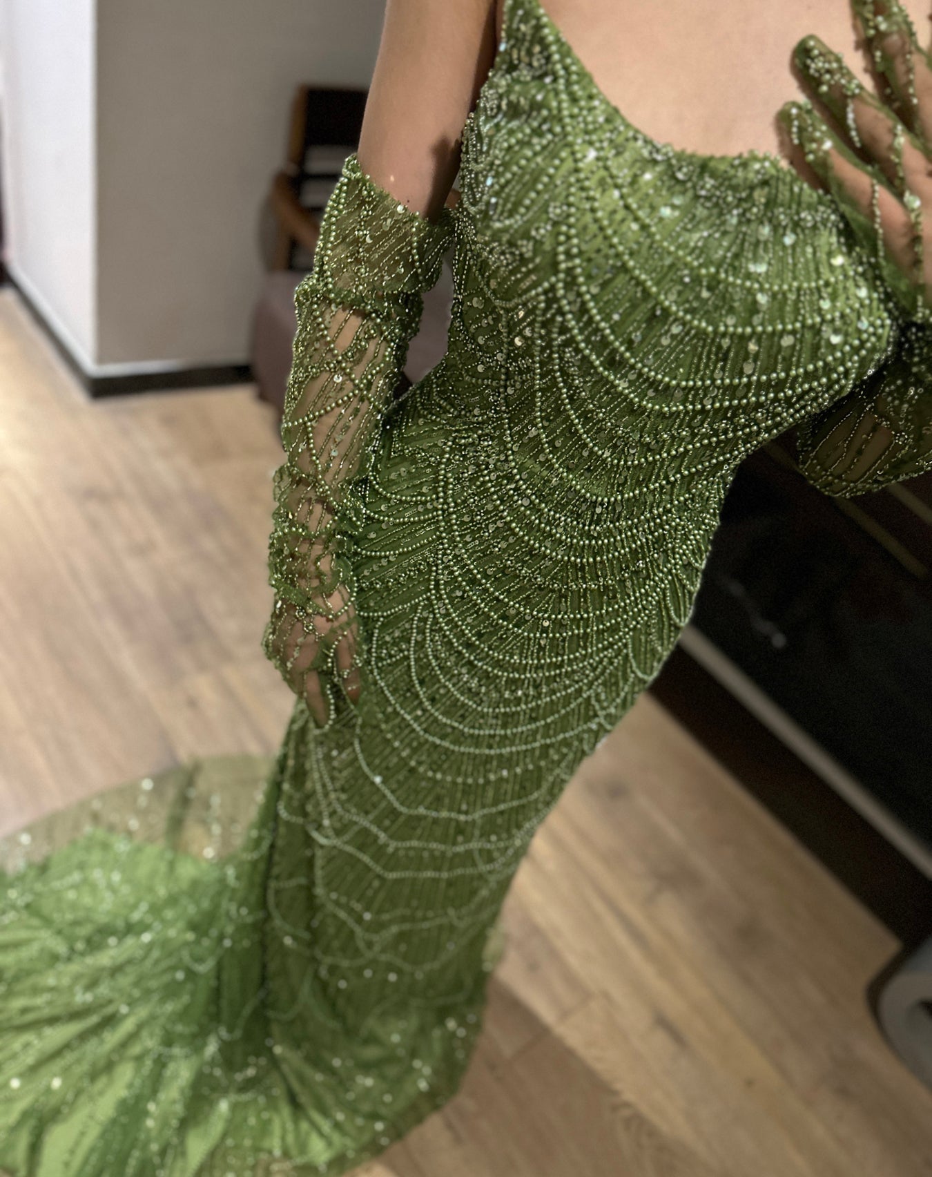 Luxury Dubai Mermaid Green Evening Dresses with Gloves SS606