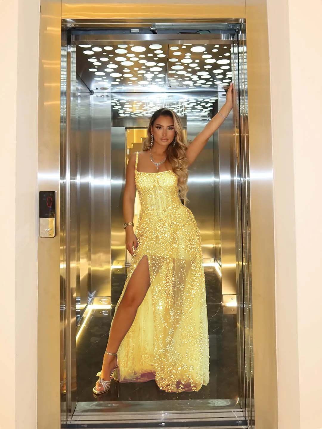 The entire bodice and skirt are adorned with intricate sequins and beading that catch light beautifully, creating an eye-catching shimmer throughout the evening. Luxurious tulle construction provides elegant movement and dimension, while the classic mermaid silhouette hugs your curves before flowing gracefully to the floor. A tasteful slit adds modern flair and ease of movement. Perfect for prom, formal galas, or any black-tie occasion where you want to command attention with refined glamour.