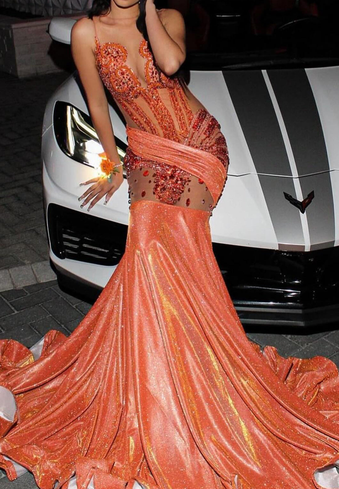 This V-Neck Spaghetti Straps Beaded Pleated Sparkly Mermaid Prom Dress for Black Girls is designed to accentuate curves and make a bold statement. With its intricate beading and shimmering fabric, this dress is perfect for prom or any special occasion. The v-neckline and spaghetti straps add a touch of sophistication, while the mermaid silhouette flatters the figure. Stand out from the crowd with this stunning dress.