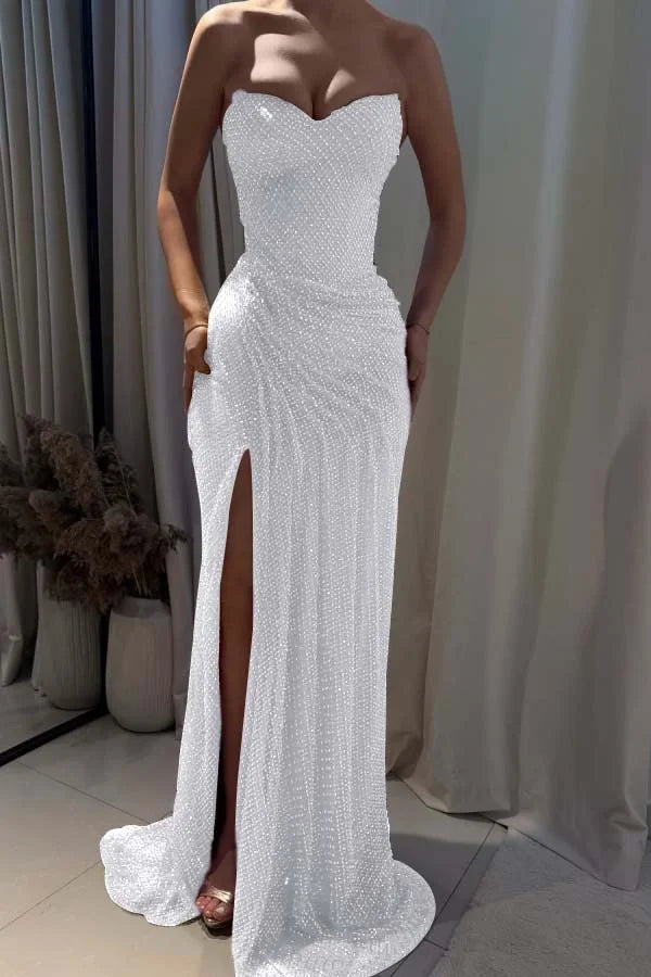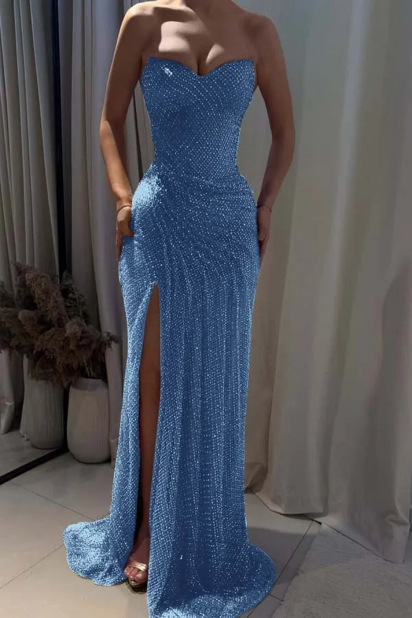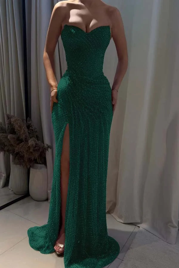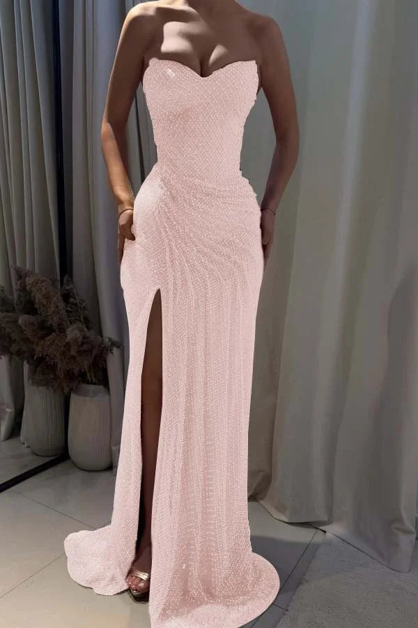 Fuchsia Sweetheart Beaded Split Gorgeous Prom Dress ZT0694