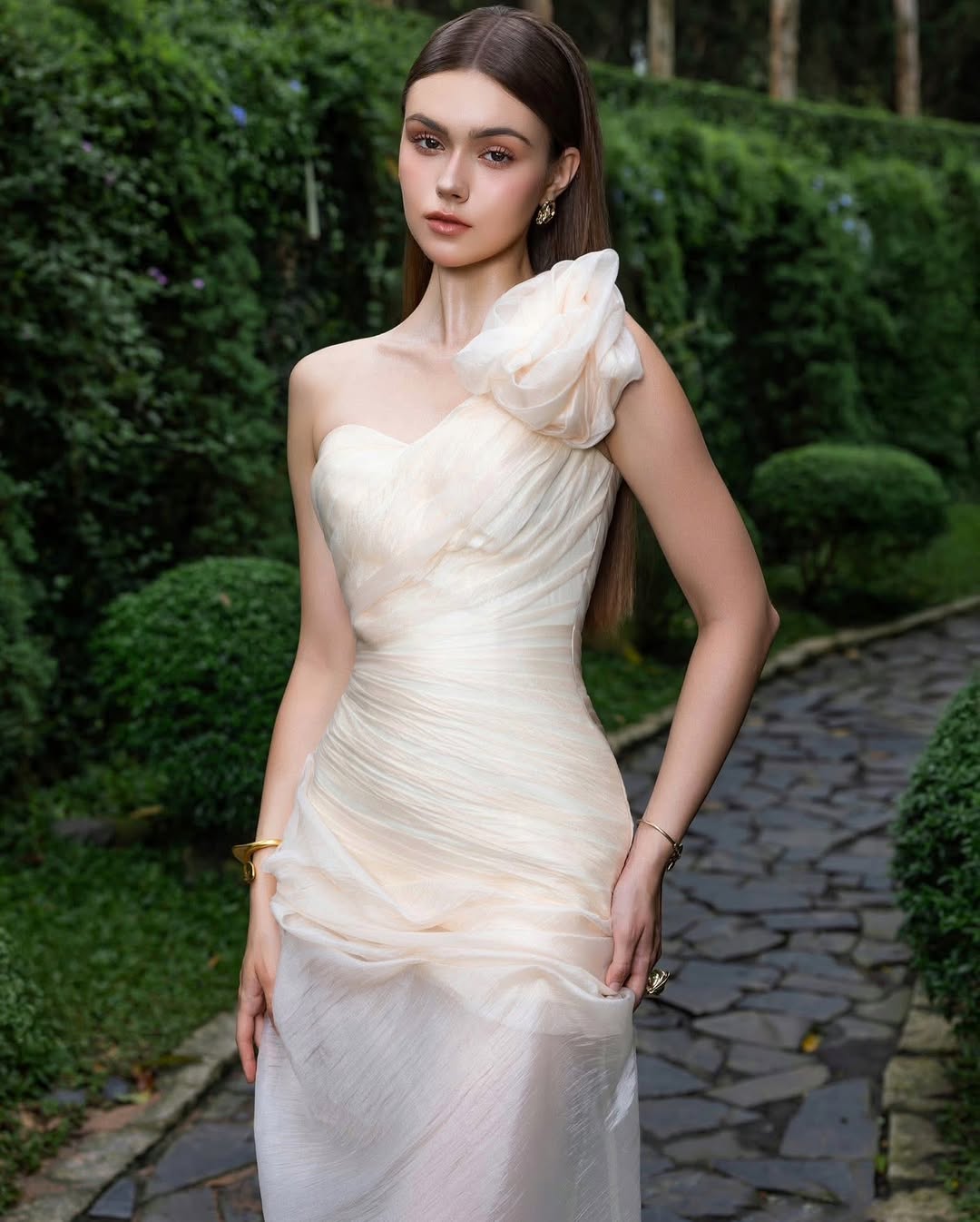 Elevate your prom night with this sophisticated champagne one-shoulder gown. The asymmetrical neckline creates an elegant, modern silhouette while the flowing fabric drapes gracefully for effortless movement on the dance floor. This timeless neutral shade complements all skin tones and pairs seamlessly with any accessory choice. Perfect for making a refined statement at formal events, this dress combines contemporary design with classic prom elegance.