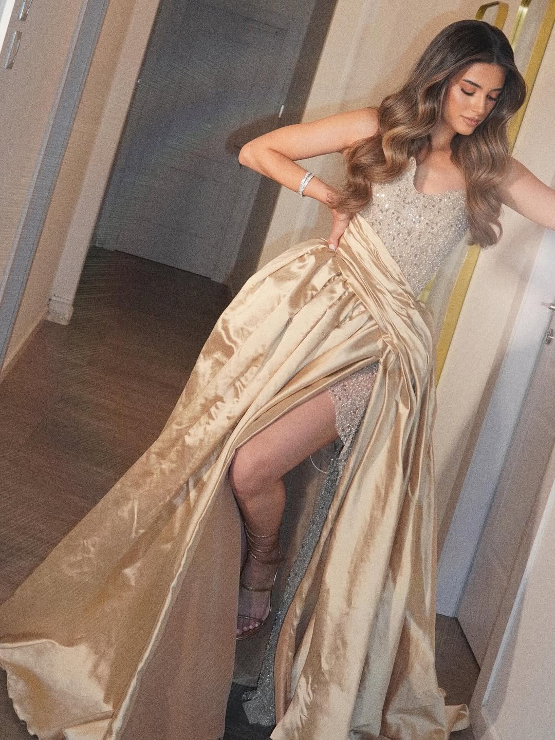 Make a stunning entrance in this sophisticated strapless prom dress, designed to captivate from every angle. The sleek A-line silhouette flatters all figures while the delicate pleating adds refined texture and movement. Shimmering sequins catch the light beautifully, creating an elegant sparkle without overwhelming the design. The floor-length cut delivers timeless glamour perfect for proms, galas, and formal events. This dress combines classic elegance with modern details for a look that's both memorable and wearable.