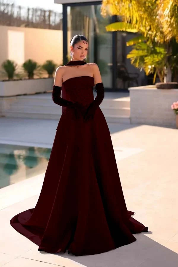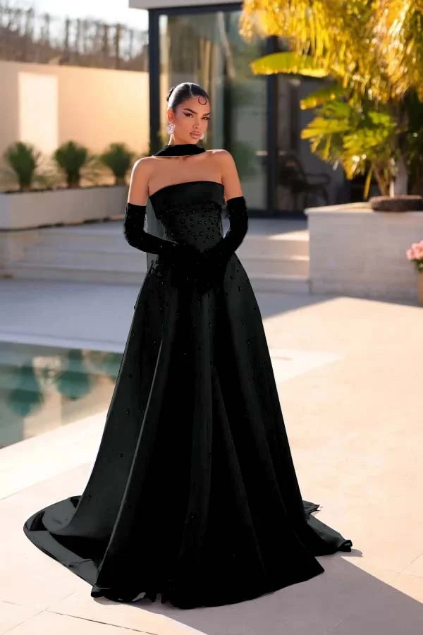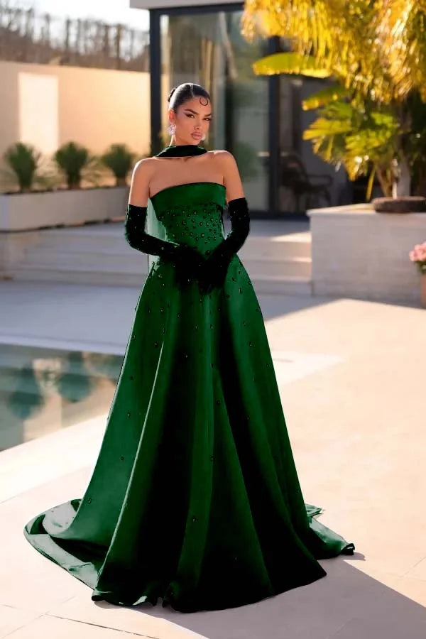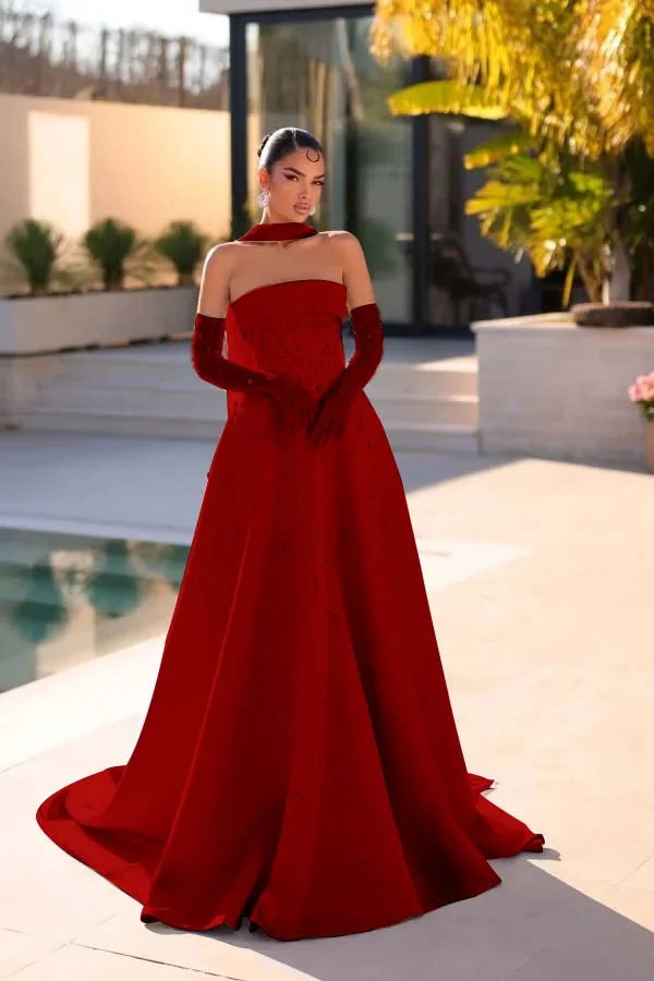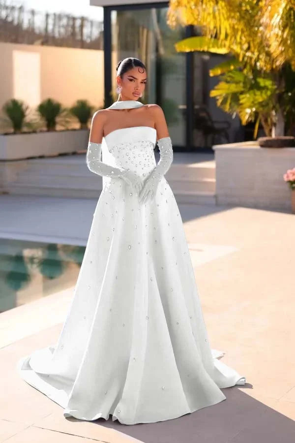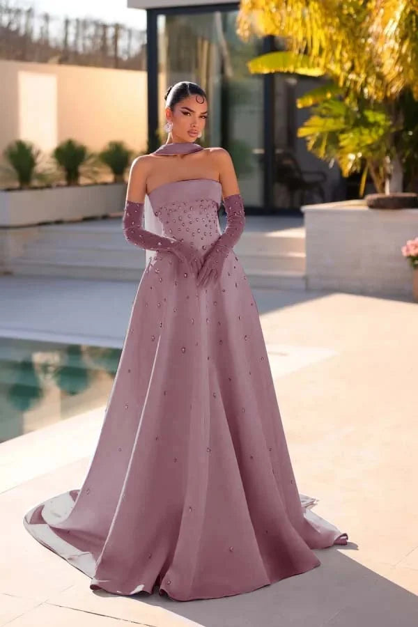 Light Blue Strapless A-Line Beaded Rhinestones Prom Dress With Gloves And Scarf