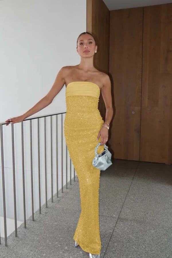 Lilac Strapless Pearls Beaded Sheath Prom Dress