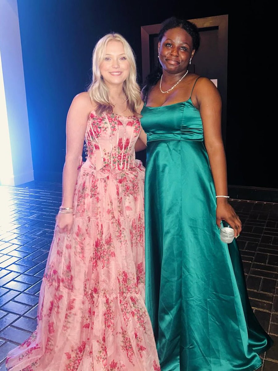 The Santiago prom dress is the epitome of romantic elegance, designed to make you feel like you're floating on air. Crafted from soft, flowing chiffon, this floor-length A-line dress features a strapless neckline and a sleeveless design, allowing you to move freely and gracefully. The tiered skirt adds volume and dimension, while the delicate floral embellishments across the bodice and skirt bring a soft, feminine touch. A charming bow adds the perfect finishing detail. The lace-up back ensures a customizable, secure fit, making this dress as comfortable as it is beautiful. This pink gown will help you stand out with its effortless beauty and sophisticated charm, perfect for both evening dresses and formal dresses alike.