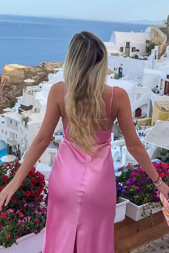 Elevate your prom night with this stunning satin formal dress. Delicate spaghetti straps frame a graceful scoop neckline, while expertly crafted pleats add dimension and movement to the silhouette.